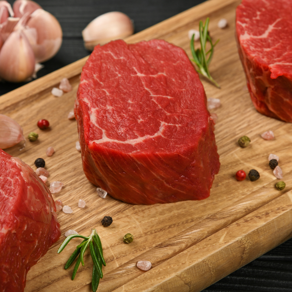 Beef tenderloin steaks are the ultimate treat, whether you're celebrating a special occasion or just craving an exceptionally tender cut. Grill them to perfection with a simple seasoning of salt and pepper, or pan-sear with butter, garlic, and fresh herbs for a restaurant-quality experience at home. These steaks are also perfect for a classic beef Wellington—just wrap them in puff pastry with mushroom duxelles for a show-stopping dish.